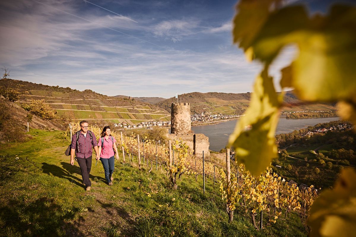 Wanderer und Naturfreunde kommen am Romantischen Rhein voll auf ihre Kosten: Die beiden Fernwanderwege Rheinsteig und RheinBurgenWeg bieten ein erstklassiges Wandererlebnis auf bestens ausgeschilderten Wegen, die teils auf schmalen Pfaden entlang steiler Hänge verlaufen, teils durch malerische Wälder und offene Weinlandschaften führen. Unterwegs bieten sich immer wieder atemberaubende Ausblicke auf den Rhein, auf die vielen Burgen und Schlösser und die kleinen Winzerdörfer, die wie Perlen an der Uferlinie aufgereiht liegen. Die Etappenorte sind bestens mit öffentlichen Verkehrsmitteln erreichbar, sodass sowohl von Unterkunft zu Unterkunft als auch von einem Standortquartier aus gewandert werden kann.