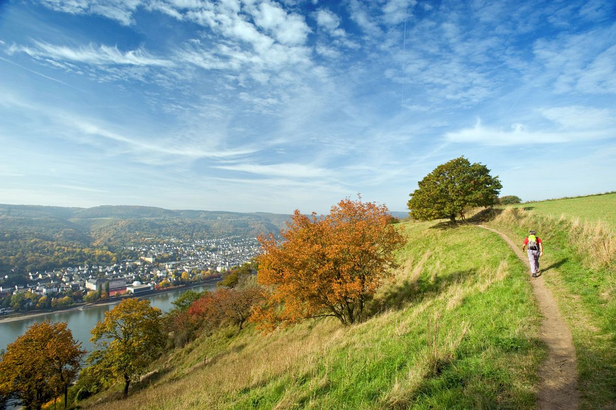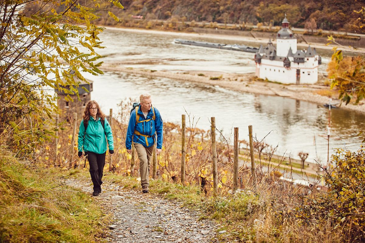 Wanderer und Naturfreunde kommen am Romantischen Rhein voll auf ihre Kosten: Die beiden Fernwanderwege Rheinsteig und RheinBurgenWeg bieten ein erstklassiges Wandererlebnis auf bestens ausgeschilderten Wegen, die teils auf schmalen Pfaden entlang steiler Hänge verlaufen, teils durch malerische Wälder und offene Weinlandschaften führen. Unterwegs bieten sich immer wieder atemberaubende Ausblicke auf den Rhein, auf die vielen Burgen und Schlösser und die kleinen Winzerdörfer, die wie Perlen an der Uferlinie aufgereiht liegen. Die Etappenorte sind bestens mit öffentlichen Verkehrsmitteln erreichbar, sodass sowohl von Unterkunft zu Unterkunft als auch von einem Standortquartier aus gewandert werden kann.