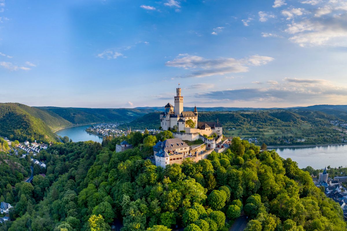 Der Romantische Rhein ist eine der beeindruckendsten Kulturlandschaften Europas. Zwischen Bingen/Rüdesheim und Remagen/Unkel schlängelt sich der Rhein in malerischen Windungen durch ein einzigartiges Tal, das durch steile Weinberge, dichte Wälder und schroffe Felsen geprägt ist. Diese Region ist nicht nur landschaftlich reizvoll, sondern auch kulturell und geschichtlich von großer Bedeutung. In der Region warten mehr als 60 steinerne Zeitzeugen darauf, entdeckt zu werden. Mittelalterliche Ritterburgen, romantische Barockschlösser und beeindruckende Festungsanlagen erzählen von einer bewegten Vergangenheit, in der der Rhein als wichtige Handelsroute diente und Kaufleute, Pilger und Romantiker in die Region zog. Besonders bekannt ist die Loreley, der sagenumwobene Felsen, der majestätisch über dem Fluss aufragt und untrennbar mit der Geschichte des Rheins verbunden ist.