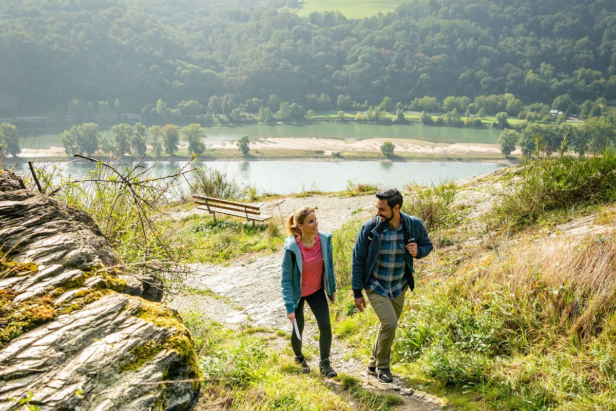 Vom Startpunkt aus führt der Weg durch einen Wald, der streckenweise wie ein Urwald wirkt. Nach einem ersten Anstieg geht es talwärts, wo der Weg eine perfekte Perspektive auf die geschichtsträchtige Marksburg bietet. Der Aufstieg zum Rheinplateau führt zunächst durch blühende Wiesen und später durch einen lichten Wald, der dabei hilft den stressigen Alltag hinter sich zu lassen.