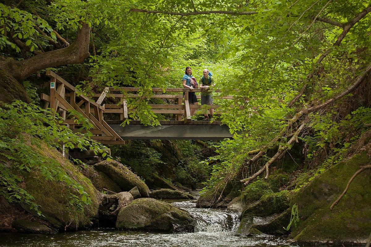 Dominant in der Stille des Waldes ist nur das Rauschen des Ehrbachs, das besonders auf der hochstehenden Peterslay mit Blick auf die Rauschenburg aus der Tiefe der Klamm nach oben dringt. Schon im frühen Mittelalter ist das Ehrbachtal als Seitental zur Mosel und Verbindung zu Boppard am Rhein als strategisch günstige und attraktive Lage erkannt worden. Heute ist es das Traumziel für Wandernde. Um die Schönheiten der Ehrbachklamm sowie das Plätschern und die Wasserfälle des Baches am besten erleben zu können, sollte man die Traumschleife gegen den Strom und somit gegen den Uhrzeigersinn wandern. Die Wanderung kann um die Schöneckschleife auf 15,4 km erweitert werden.
