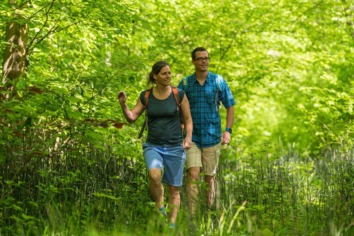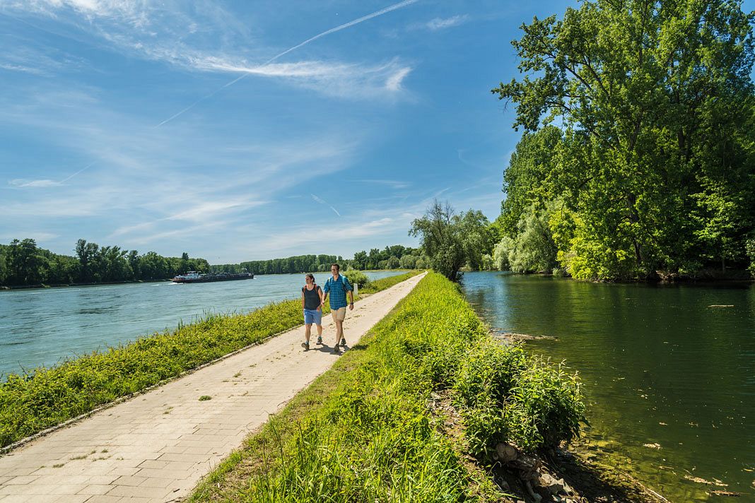 Auf Schusters Rappen durch die urwüchsige Landschaft der Rheinauen – besser lässt sich diese beinahe mystisch anmutende Landschaft bei Hördt kaum erleben. Der 12,6 km lange Treidlerweg führt durch eine intakte und geschützte Auenlandschaft von Altrheinarmen zwischen Michelsbach, dem Rhein und dem Naturschutzgebiet Hördter Rheinaue. Der Name des Weges rührt von der Tätigkeit her, Schiffe gegen den Strom flussaufwärts zu bewegen. Seit dem 8. Jh. und bis zur Erfindung der Dampfschifffahrt wurden Schiffe flussaufwärts getreidelt, das heißt, Knechte oder Zugtiere zogen das Schiff vom fast ebenen Ufer aus an einer langen Leine gegen die Strömung des Flusslaufs. Es geht durch naturbelassene Auenwälder und vorbei an Baggerseen, Feldern und Streuobstwiesen, über allem liegt der Klangteppich quakender Frösche und der zwitschernden, artenreichen Vogelwelt. Ein Augen- und Ohrenschmaus für stille Genießer:innen. Mal was völlig anderes – auf geht’s.